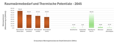 Zur Deckung des Wärmebedarfs werden CO2-Emissionen in Höhe von ca. 175 Tsd.t CO2 /a verursacht. Diese Emissionen sollen nachhaltig reduziert werden. Darauf konzentrieren sich die Bemühungen der Stadt Detmold mit der Erreichung der Klimaneutralität auch im Wärmesektor.